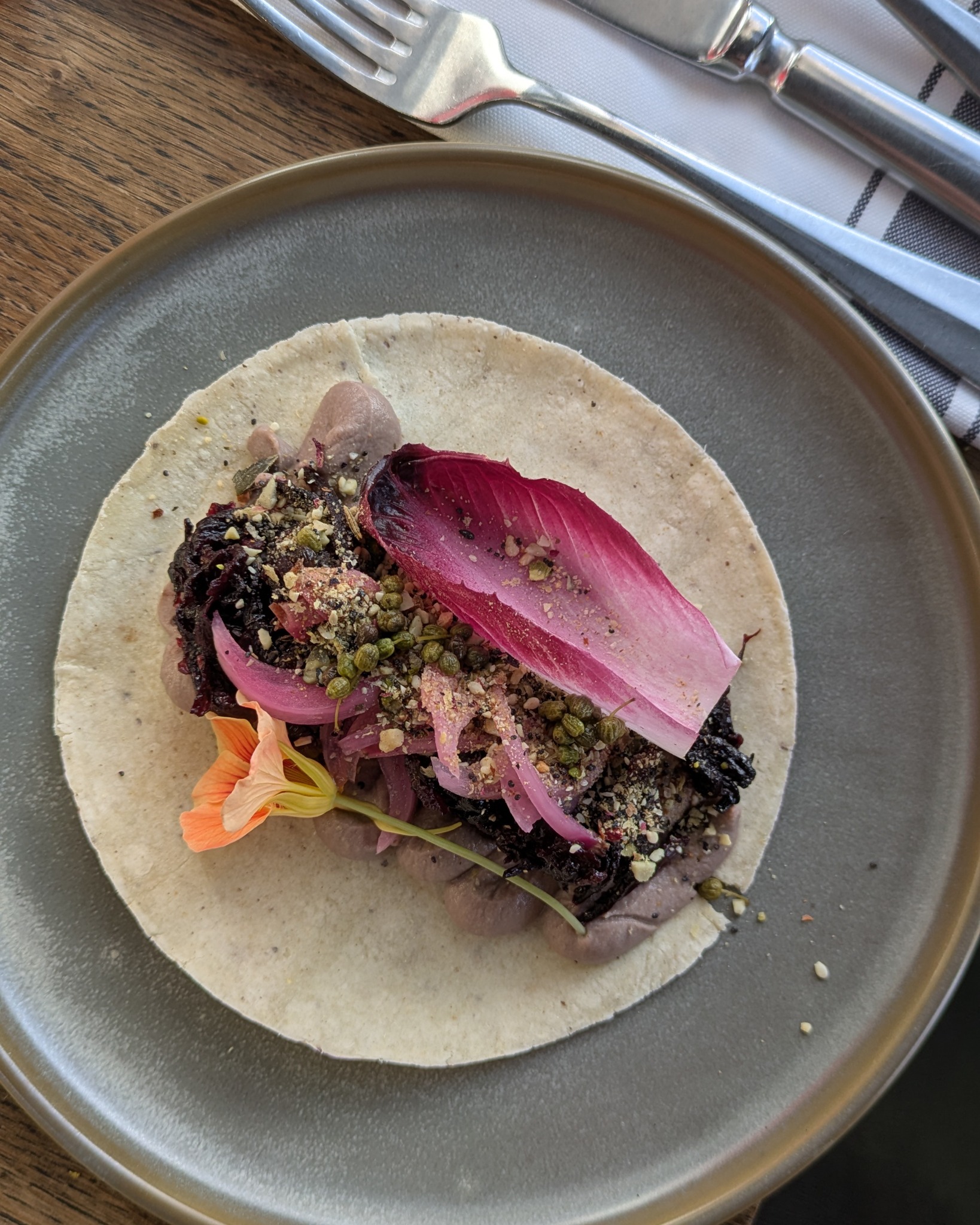 - suure mungalille majo kirevate õite ja krõmpsuva rohelisega – eelroog kohalike köögiviljadega, mida sai dippida maitsekasse majoneesi! Jumalik kerge maitserännak erinevatest taimedest taldrikul.